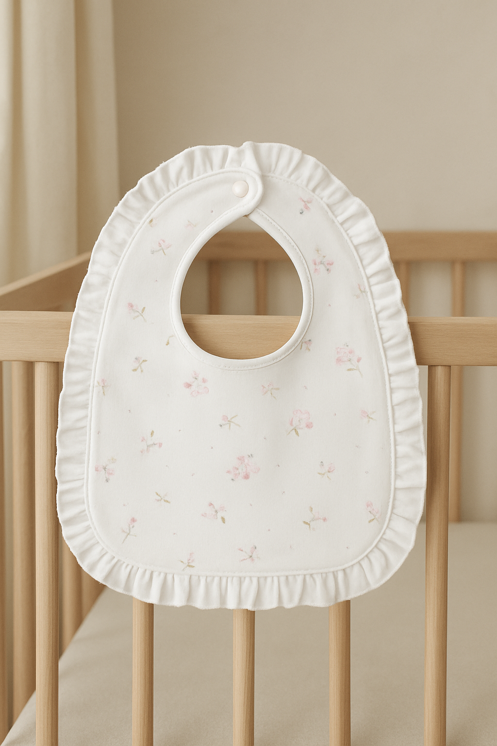 Nuestro Babero Blossom está confeccionado en 100% Algodón Pima Peruano Premium, una fibra suave, hipoalergénica y delicada con la piel.